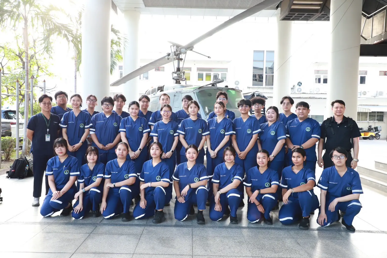 ในการศึกษาดูงานครั้งนี้ นักศึกษาได้เรียนรู้เกี่ยวกับระบบการลำเลียงผู้ป่วยฉุกเฉินทางอากาศ (Aeromedical Evacuation) แนวทางการดูแลผู้ป่วยลำเลียงทางอากาศ