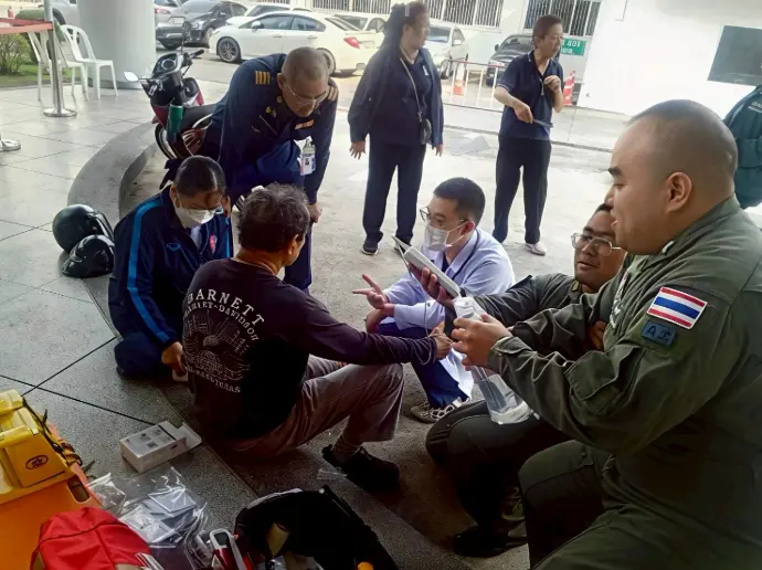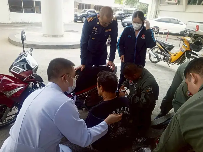 เมื่อวันพฤหัสบดีที่ ๑๓ พฤศจิกายน ๒๕๖๘ เวลา ๑๕.๐๕ น. ทีมแพทย์และพยาบาล กองควบคุมสุขภาพผู้ทำการในอากาศ สถาบันเวชศาสตร์การบินกองทัพอากาศ ได้รับแจ้งว่า พบผู้ป่วยเป็นลม เวียนศีรษะ อาเจียน แต่ไม่หมดสติ ณ ลานเอนกประสงค์ ใต้อาคาร ๓ (จุดจอดเครื่องบินเฮลิคอปเตอร์) จีงเข้าปฐมพยาบาลเบื้องต้น วัดสัญญาณชีพ เจาะหาระดับน้ำตาลปลายนิ้ว และสอบถามซักประวัติผู้ป่วย ทราบข้อมูลเบื้องต้นว่า ผู้ป่วยมีโรคประจำตัว เป็นโรคหัวใจ และโรคเบาหวาน หลังจากนั้น จึงดำเนินการส่งต่อห้องฉุกเฉิน โรงพยาบาลภูมิพลอดุลยเดช กรมแพทย์ทหารอากาศ เพื่อทำการรักษาต่อไป