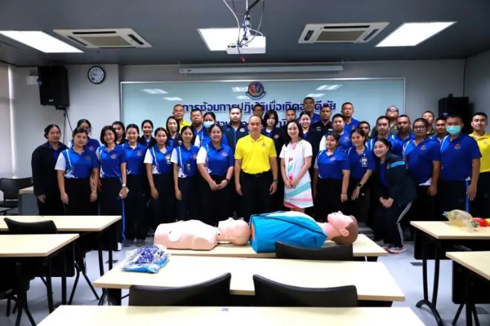 - เวลา ๐๘.๐๐ - ๑๐.๐๐ น. การฝึกปฏิบัติการช่วยชีวิตขั้นพื้นฐาน (CPR & AED & Chocking) วิทยากรของสถาบันเวชศาสตร์การบินกองทัพอากาศ
