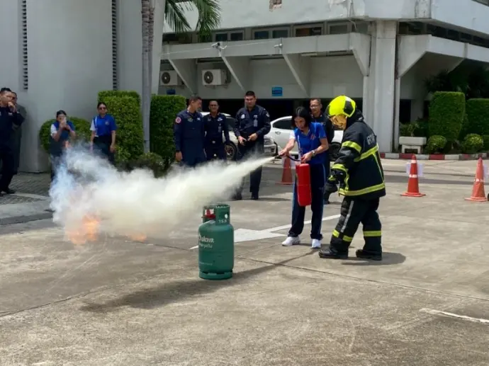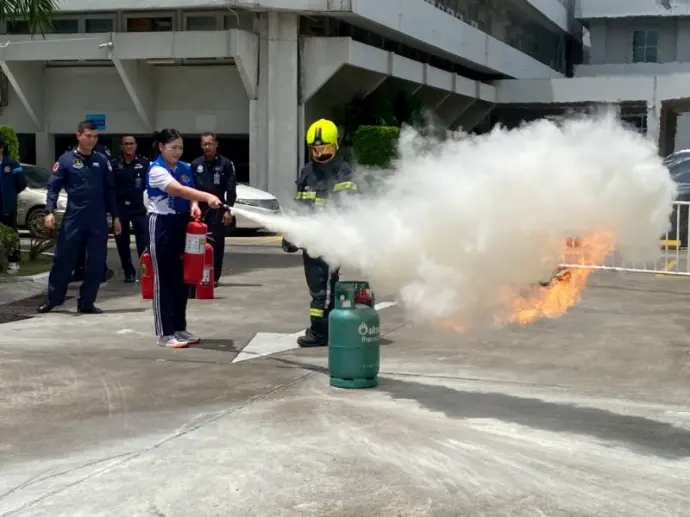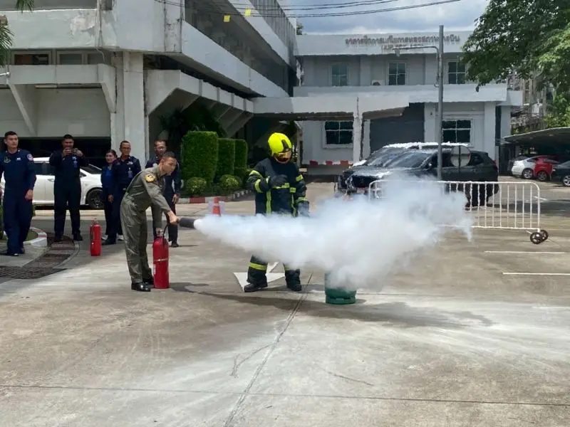 - เวลา ๑๐.๐๐ - ๑๒.๐๐ น. การฝึกปฏิบัติการใช้ถังดับเพลิงเบื้องต้น วิทยากรจากกองการดับเพลิงและกู้ภัย กรมช่างโยธาทหารอากาศ