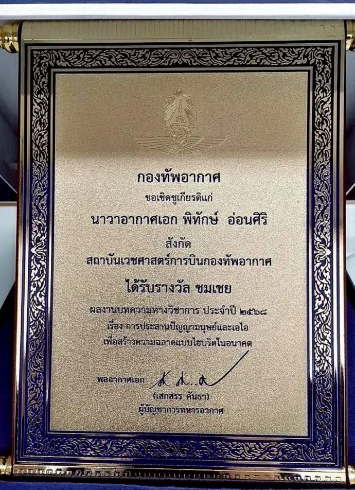 ประจำปี ๒๕๖๘ เรื่อง “การประสานปัญญามนุษย์และเอไอ เพื่อสร้างความฉลาดแบบไฮบริดในอนาคต” อันเป็นประโยชน์ต่อภารกิจของกองทัพอากาศต่อไป