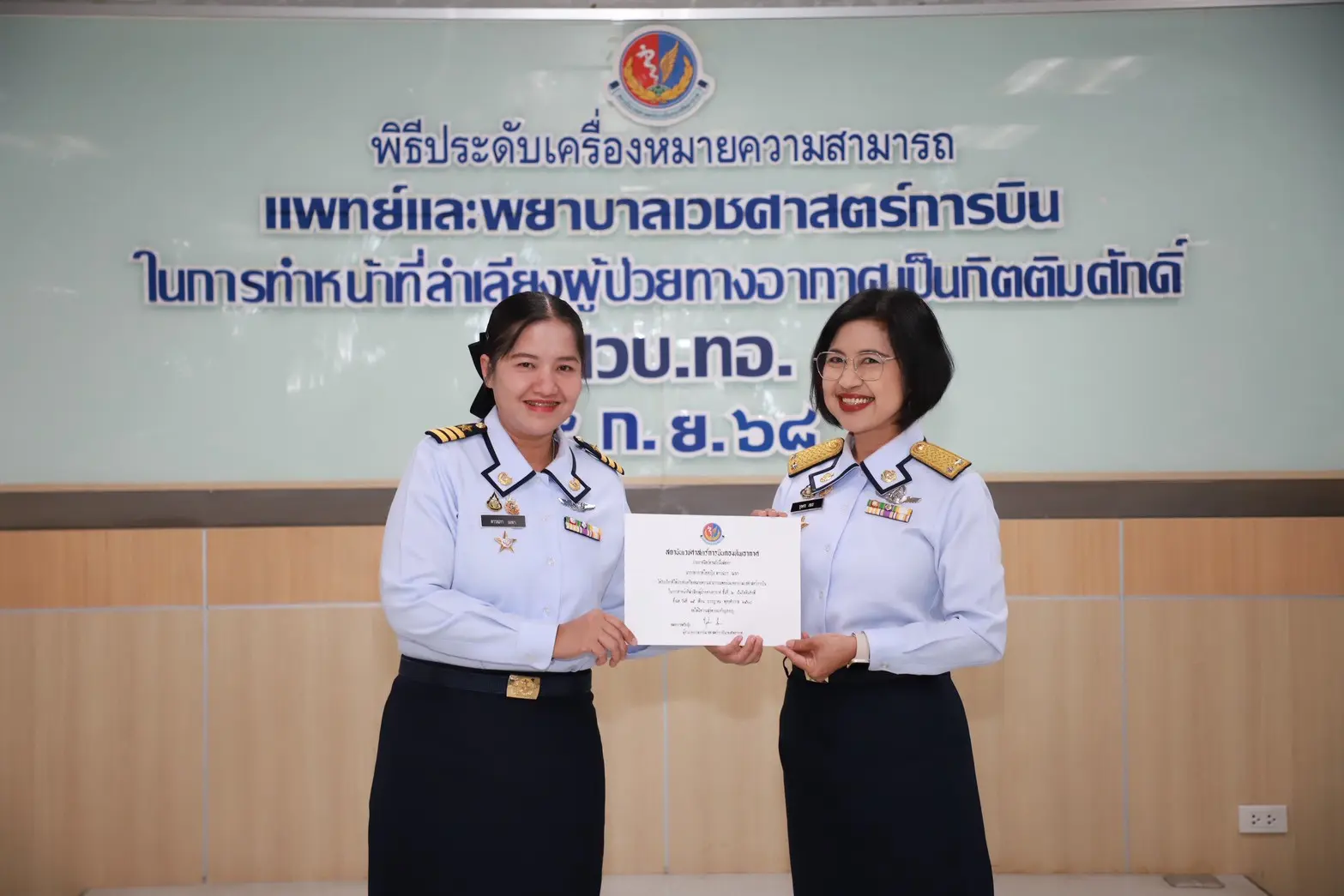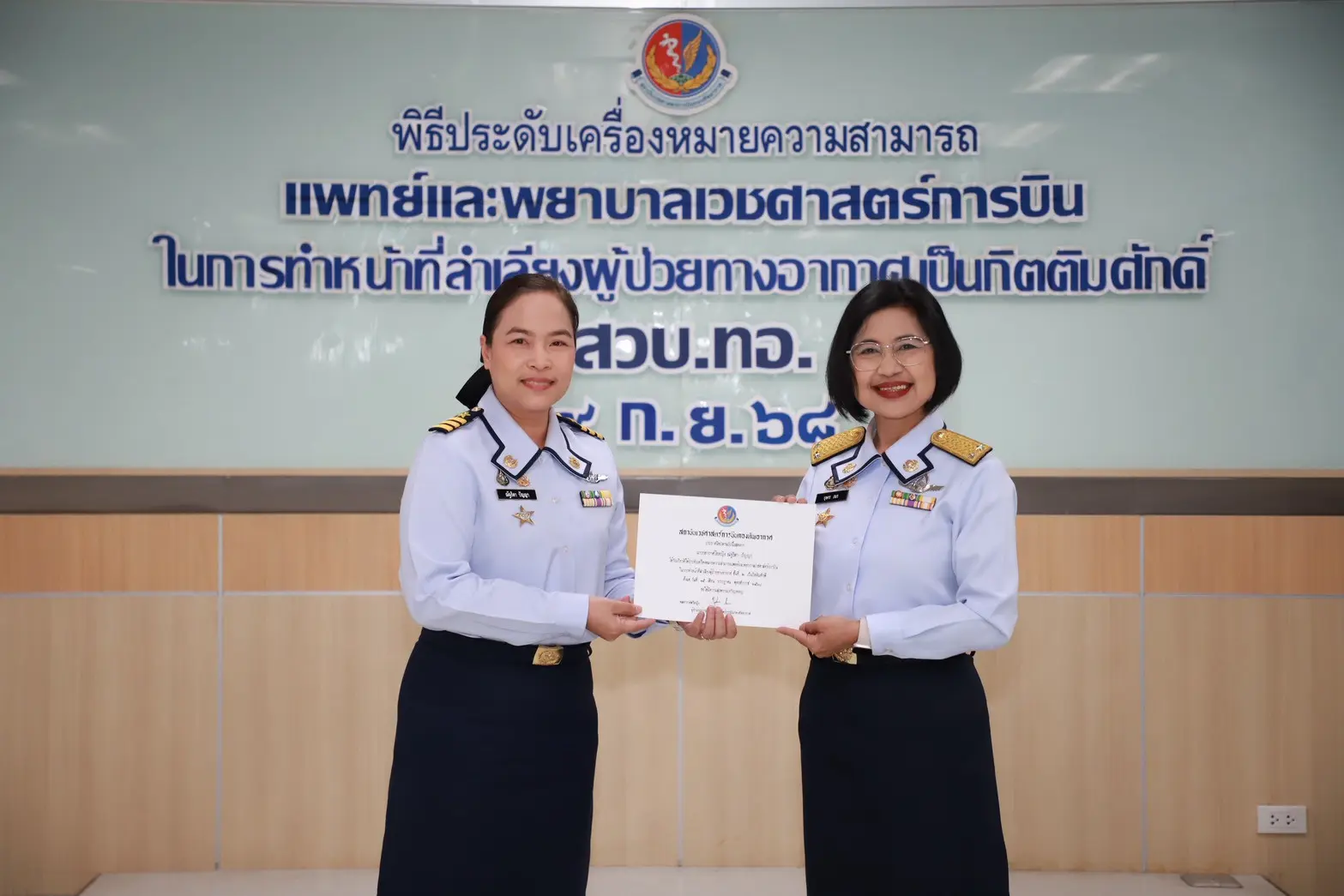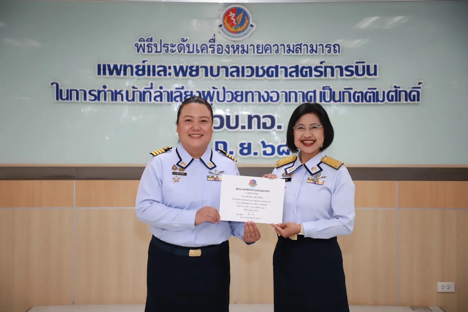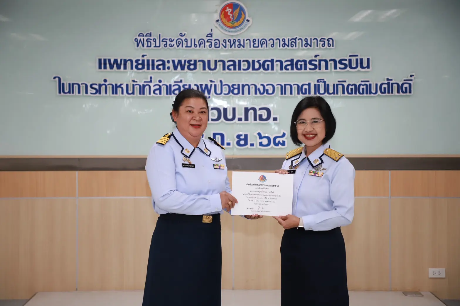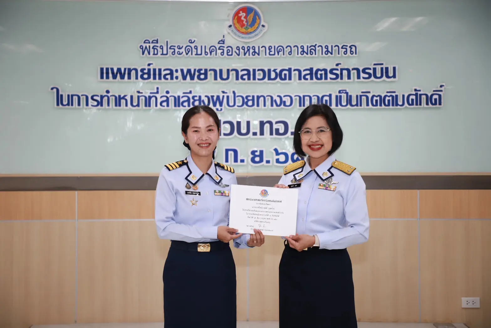 พลอากาศตรีหญิง บุษกร ภมร ผู้อำนวยการสถาบันเวชศาสตร์การบินกองทัพอากาศ เป็นประธานในพิธีประดับเครื่องหมายความสามารถแพทย์และพยาบาลเวชศาสตร์การบิน ในการทำหน้าที่ลำเลียงผู้ป่วยทางอากาศ เป็นกิตติมศักดิ์ ให้แก่ผู้มีสิทธิ์ประดับเครื่องหมาย ในวันอังคารที่ ๙ กันยายน ๒๕๖๘ เวลา ๐๙.๐๐ น.