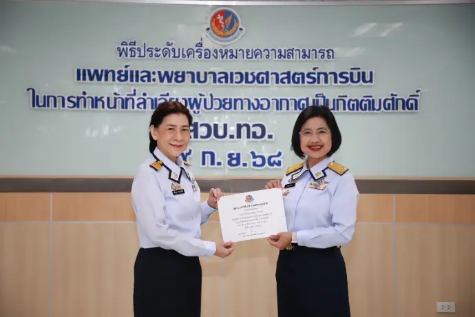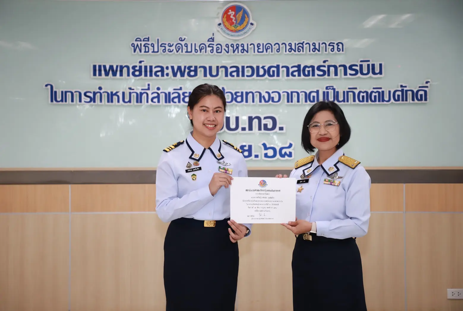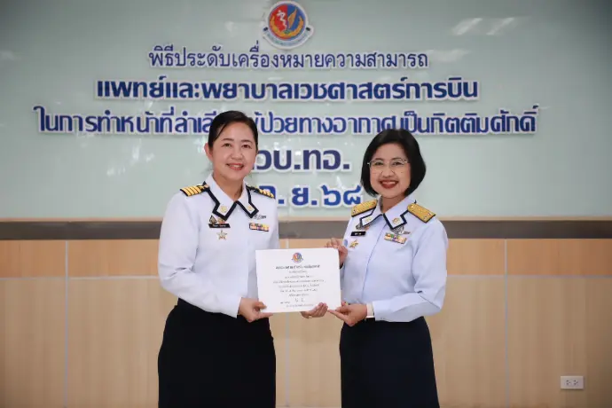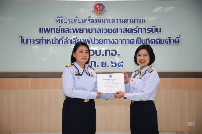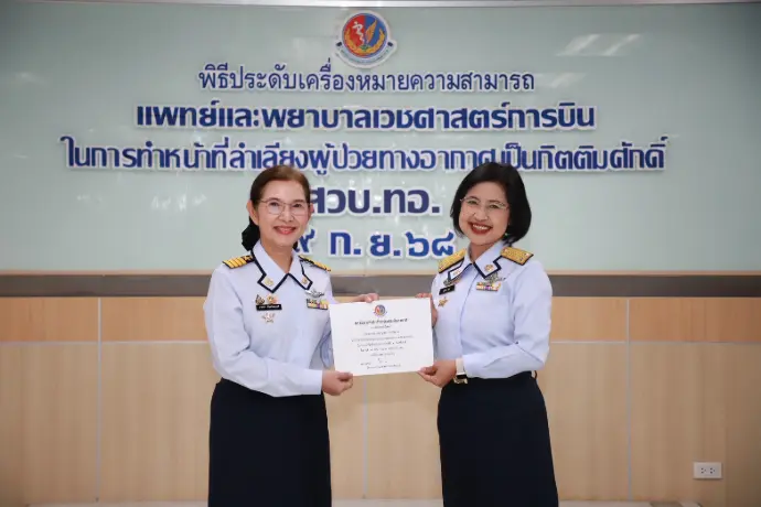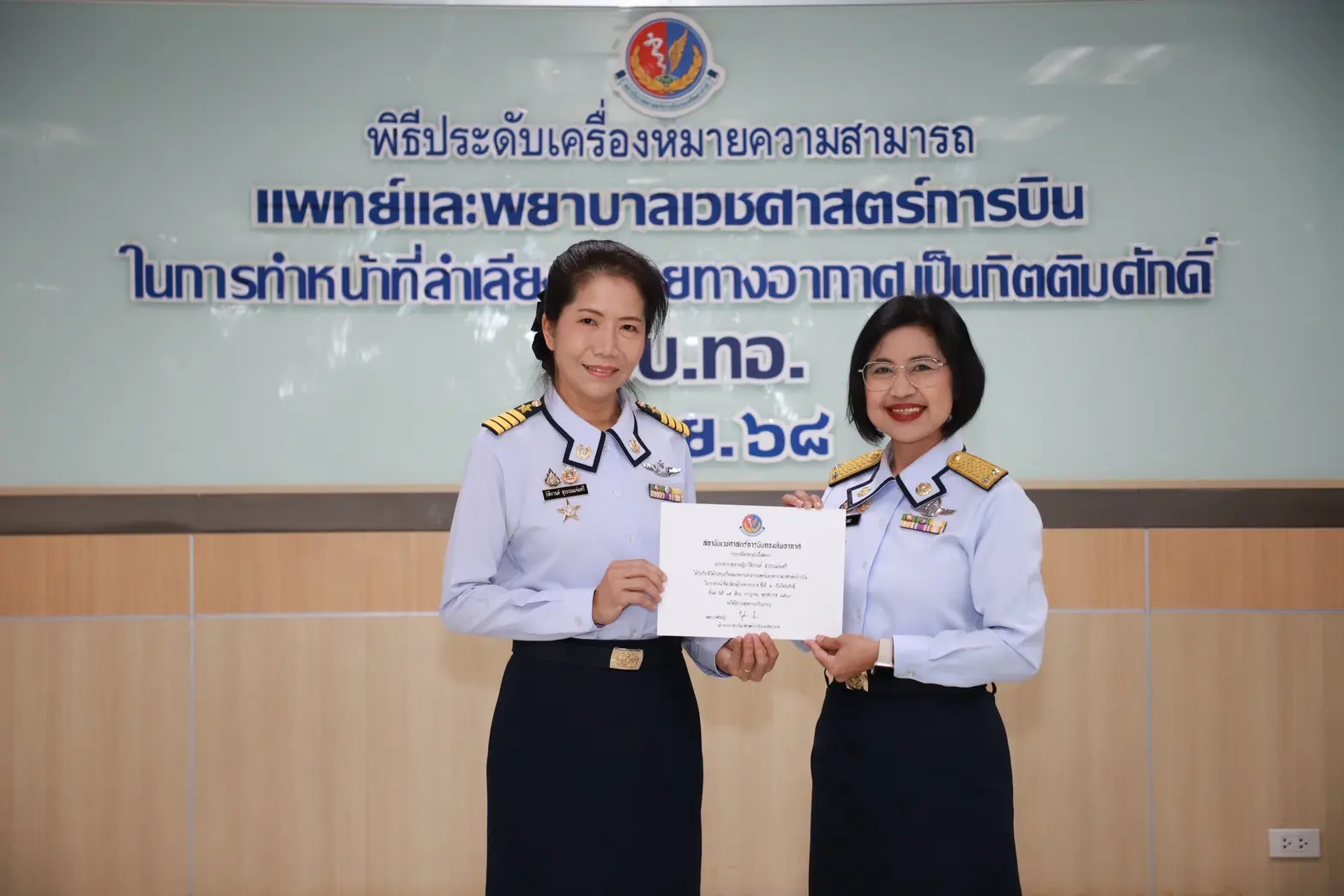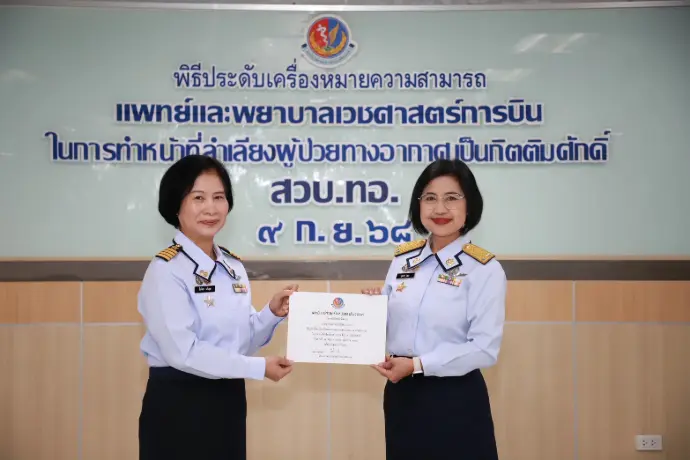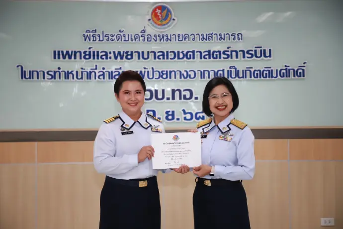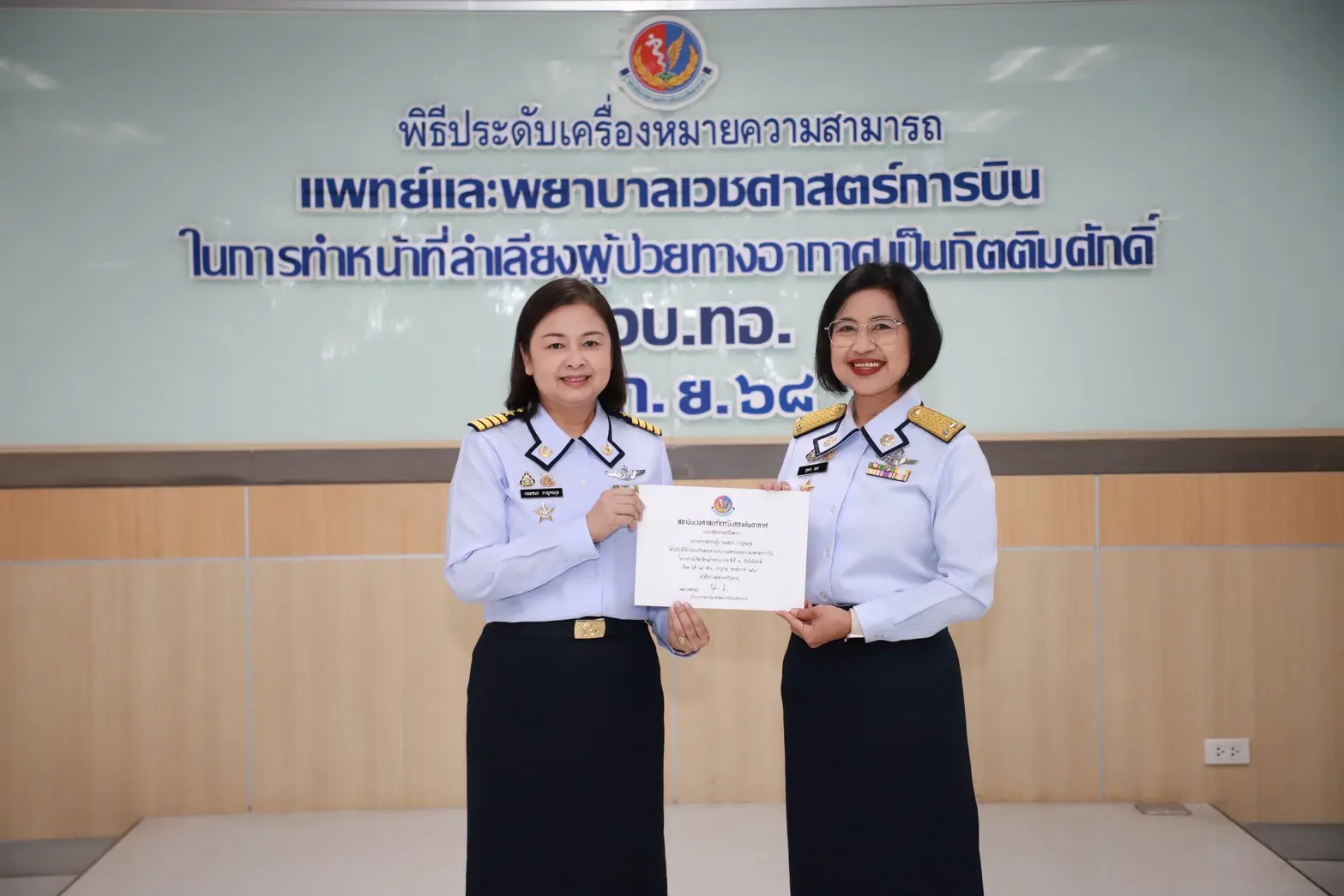 พลอากาศตรีหญิง บุษกร ภมร ผู้อำนวยการสถาบันเวชศาสตร์การบินกองทัพอากาศ เป็นประธานในพิธีประดับเครื่องหมายความสามารถแพทย์และพยาบาลเวชศาสตร์การบิน ในการทำหน้าที่ลำเลียงผู้ป่วยทางอากาศ เป็นกิตติมศักดิ์ ให้แก่ผู้มีสิทธิ์ประดับเครื่องหมาย ในวันอังคารที่ ๙ กันยายน ๒๕๖๘ เวลา ๐๙.๐๐ น.