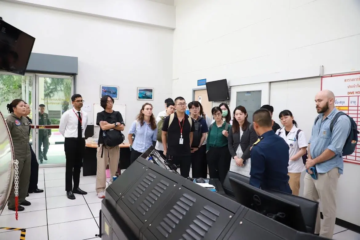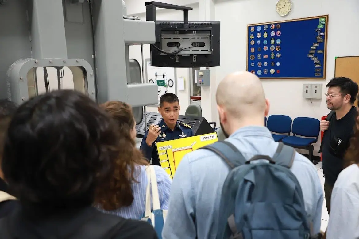 นาวาอากาศเอก พิทักษ์ อ่อนศิริ รองผู้อํานวยการ(๒) สถาบันเวชศาสตร์การบินกองทัพอากาศ ให้การต้อนรับ คณะอาจารย์และนักศึกษานานาชาติ ระดับหลังปริญญา หลักสูตรประกาศนียบัตรบัณฑิตอายุรศาสตร์เขตร้อนและสุขวิทยา(หลักสูตรนานาชาติ) ภาคการศึกษาที่ ประจำปีการศึกษา ๒๕๖๘ ในรายวิชา TMMH508 Travel Medicine ในวันที่ ๑๐ พฤศจิกายน ๒๕๖๘ เวลา ๐๙.๐๐-๑๒.๐๐ น. ณ สถาบันเวชศาสตร์การบินกองทัพอากาศ