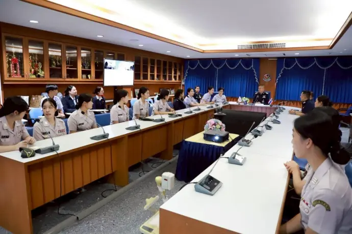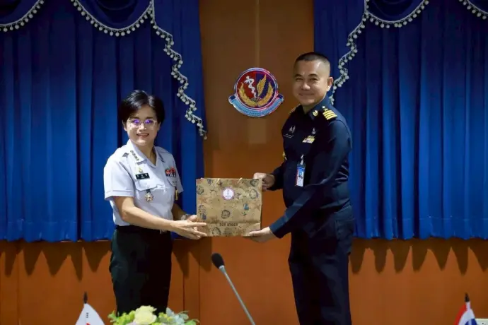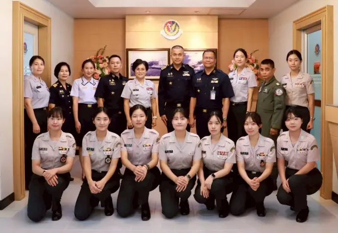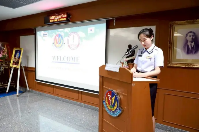 นาวาอากาศเอก พิทักษ์ อ่อนศิริ รองผู้อำนวยการ (๒) สถาบันเวชศาสตร์การบินกองทัพอากาศ เป็นผู้แทนผู้อำนวยการสถาบันเวชศาสตร์การบินกองทัพอากาศ ให้การต้อนรับและมอบของที่ระลึกให้แก่คณะโรงเรียนพยาบาล กลาโหมสาธารณรัฐเกาหลี จำนวน ๑๑ คน เมื่อวันที่ ๒๒ ตุลาคม ๒๕๖๘ เวลา ๑๓.๓๐ น. ณ ห้องหมอตระกูล ชั้น ๓ อาคารหมายเลข ๑