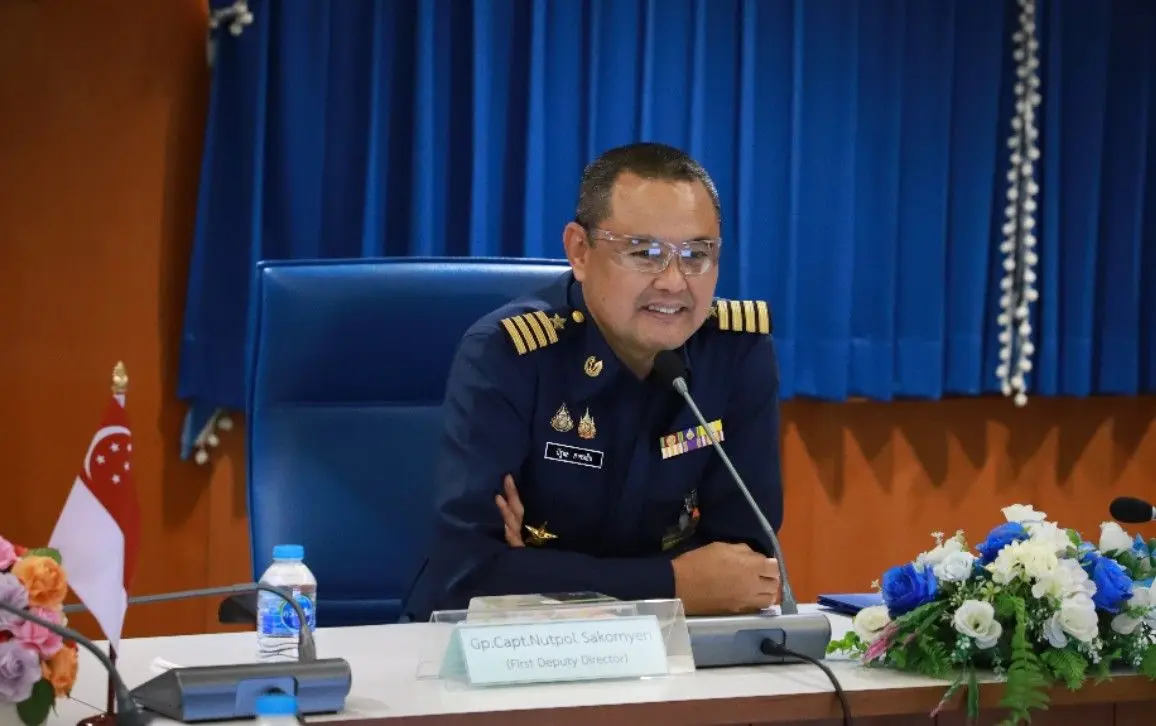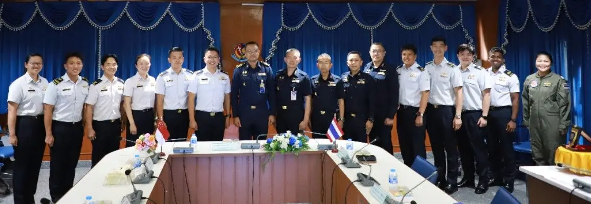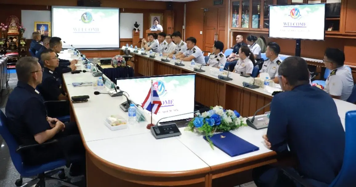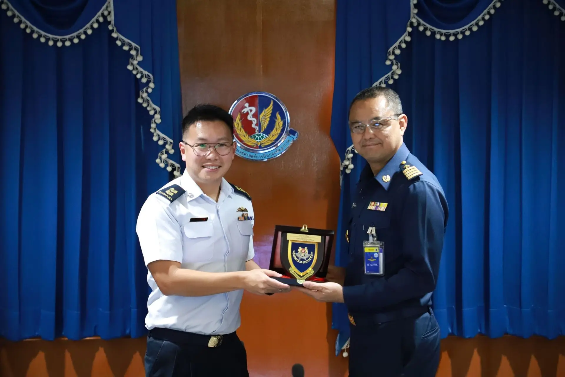 นาวาอากาศเอก นัฐพล สาครเย็น รองผู้อำนวยการสถาบันเวชศาสตร์การบินกองทัพอากาศ ให้การต้อนรับคณะผู้แทน ทอ.สิงคโปร์ จำนวน ๑๐ คน พร้อมทั้งฟังบรรยายสรุป เมื่อวันจันทร์ที่ ๒๐ เมษายน ๒๕๖๙ ณ ห้องประชุมหมอตระกูล สถาบันเวชศาสตร์การบินกองทัพอากาศ