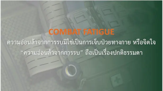 สถาบันเวชศาสตร์การบินกองทัพอากาศ มีภารกิจหลักในการสนับสนุนการปฏิบัติการทางอากาศ ด้วยการดูแล ส่งเสริม สนับสนุนขีดความสามารถด้านมนุษยปัจจัย โดยภารกิจการบริหารจัดการความล้าจากการรบ (Combat Fatigue Management) มุ่งเน้นส่งเสริม ให้คำแนะนำ เรื่องการดูแลสุขภาพกายและจิตใจ การนอนหรืองีบหลับอย่างมีประสิทธิภาพ การฝึกบริหารจัดการความเครียด เช่น เทคนิคการใช้ Micro break เทคนิคการควบคุมลมหายใจ (breathing control techniques) และจิตวิทยาสติ (Mindfulness) เป็นต้น เพื่อให้กำลังพลสามารถฟื้นฟูร่างกายและจิตใจได้อย่างรวดเร็ว นำมาซึ่งการรักษาความพร้อมรบ และสามารถปฏิบัติหน้าที่ได้อย่างปลอดภัยและมีประสิทธิภาพสูงสุด