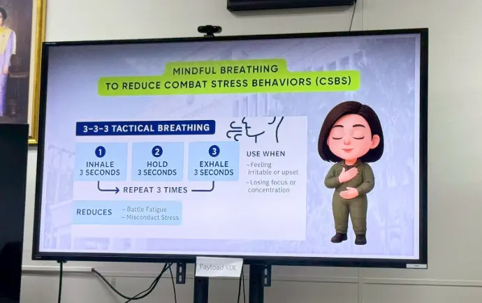 เนื่องด้วยสถานการณ์บริเวณชายแดนไทย-กัมพูชา มีความต่อเนื่องยาวนาน อาจทำให้กำลังรบมีความอ่อนล้าได้ ด้วยความห่วงใยจากผู้บัญชาการทหารอากาศ ให้สถาบันเวชศาสตร์การบินกองทัพอากาศ ดำเนินการปฏิบัติภารกิจดูแลกำลังพลทหารอากาศ เรื่อง การบริหารจัดการความล้าจากการรบ (Combat Fatigue Management) เพื่อเสริมสร้างความพร้อมทางด้านร่างกายและจิตใจของกำลังรบ สนับสนุนขีดความสามารถด้านมนุษยปัจจัย (Human Factors Capability) นำโดย พลอากาศตรีหญิง บุษกร ภมร ผู้อำนวยการสถาบันเวชศาสตร์การบินกองทัพอากาศ พร้อมด้วยทีมแพทย์ พยาบาล และนักจิตวิทยาคลินิก ปฏิบัติภารกิจ ณ กองบิน ๑ กองบิน ๓ กองบิน ๔ และชุดควบคุมการรบพิเศษทางอากาศ (Combat Control Team : CCT) กองกำลังสุรนารี และ กองบัญชาการควบคุมการปฏิบัติทางอากาศ ระหว่างวันที่ ๑๘ – ๒๙ ธันวาคม ๒๕๖๘