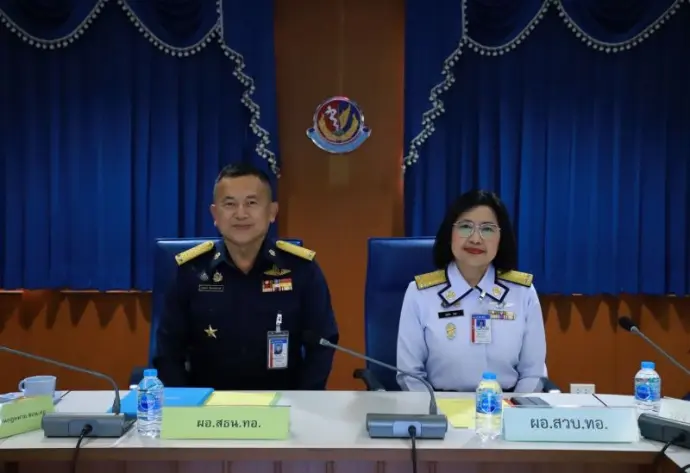 กองทัพอากาศ และผู้เกี่ยวข้องให้การต้อนรับและรับการตรวจเยี่ยม ณ ห้องประชุมหมอตระกูล สถาบันเวชศาสตร์การบินกองทัพอากาศ