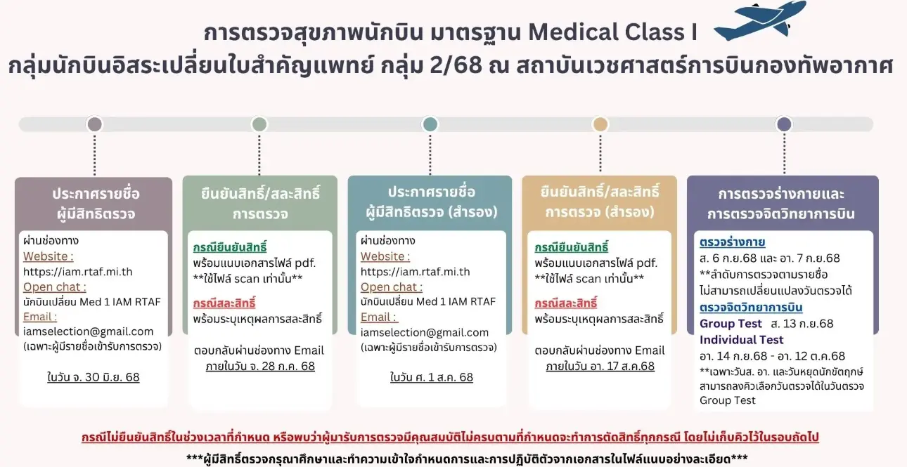 "สรุปรายชื่อผู้เข้ารับการตรวจตรวจสุขภาพนักบิน มาตรฐาน Medical Class I กลุ่มนักบินอิสระเปลี่ยนใบสำคัญแพทย์ กลุ่ม 2/68"